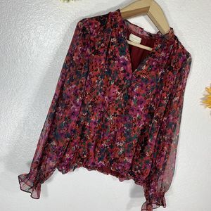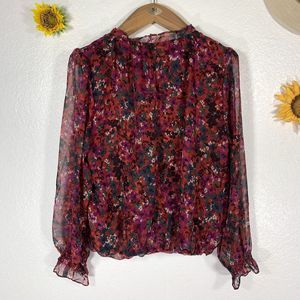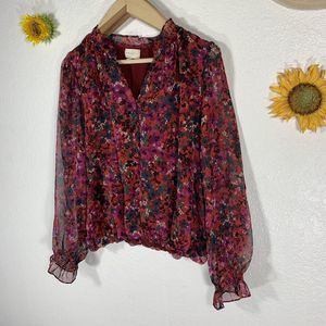 Melloday Floral Bouquets Ruffle Sleeve Fabric Quarter Button Blouse Sz XL Womens. Great condition! Size XL Pit to pit 20.5-22 Length 25 Measurements approx Bin # 1