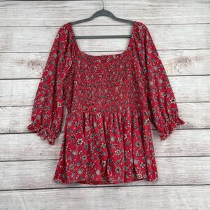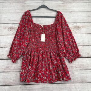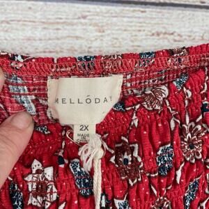 Melloday Floral Off Shoulder Blouse Women's Size 2X Red/White/Blue
