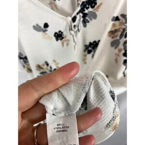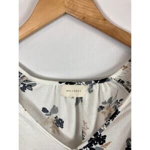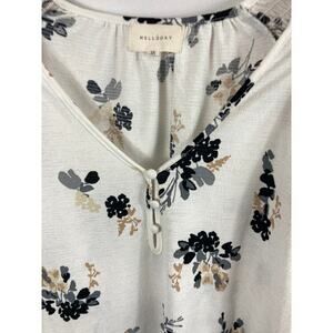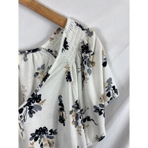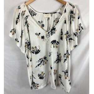 Melloday Floral Textured Blouse flutter sleeve buttons at v neck smocked shoulder great shape