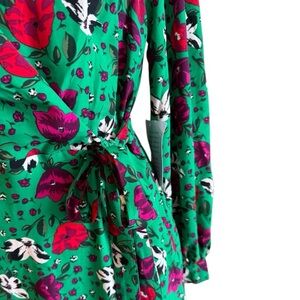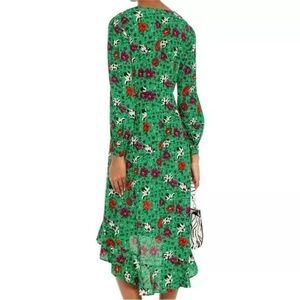 Melloday Green Floral Wrap Midi Dress Small – Long Sleeve Ruffle Hem V-Neck