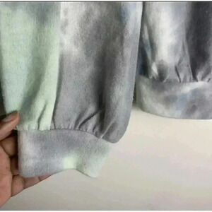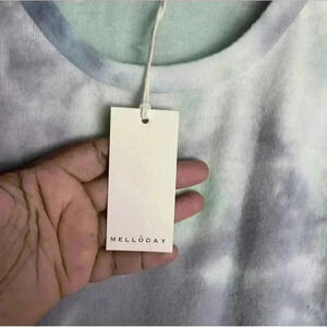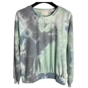 Melloday Green Gray Graphic Tie Style Pullover Cozy Soft Sweater Size M Women