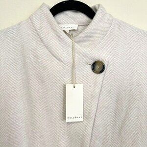 Melloday Herringbone Beige Wool Blend Pea Coat Size Large NWT