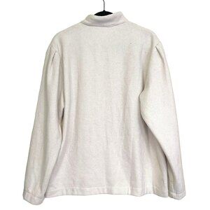 Very light beige herringbone print. Cross 2 button closure with slightly puff shoulder sleeves