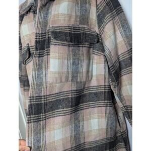 Melloday Mellóday Soft Pink Black Flannel Jacket Shacket Coat Plus Size 2X 2XL