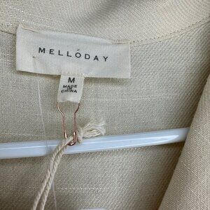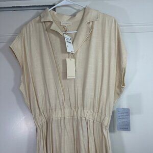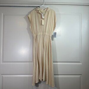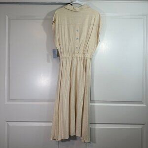 Melloday Notch Collar Short Sleeve Midi Cream Dress M - NEW