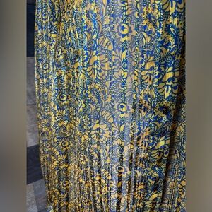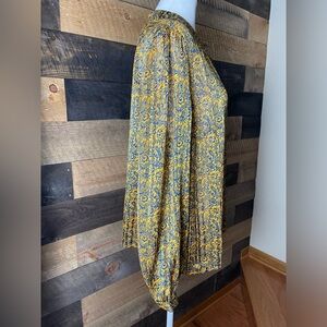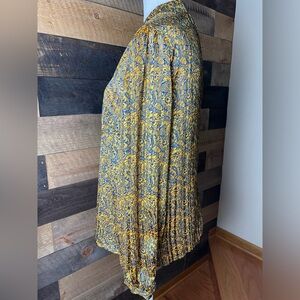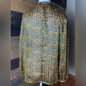 Melloday Orange Blue Metallic Floral Sheer Button Down Blouse Top, Size Large