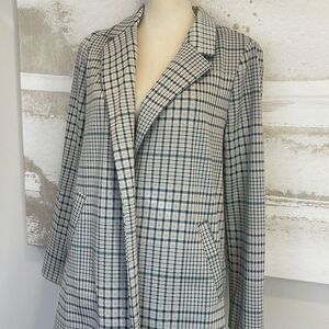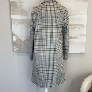 Melloday TRENCH COAT GREY BLUE PLAID SLASH POCKET OPEN FRONT