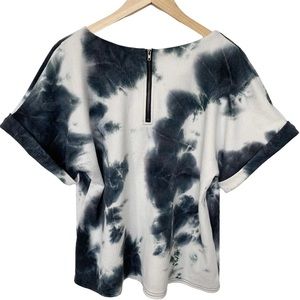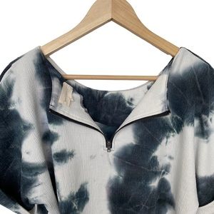 Melloday Tie Dyed Cuff Short Sleeve Zip Up Top