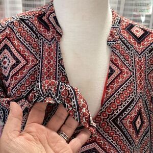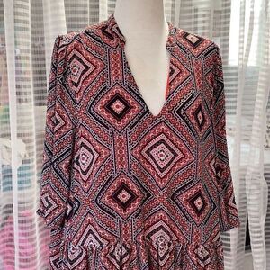 Melloday Tunic Top Dress Geometric Tiered Women’s 2X Boho V-Neck Long Sleeve