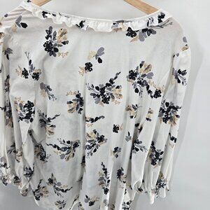 Melloday White Floral V-Neck Long Sleeve Pullover Casual Textured Blouse 2x
