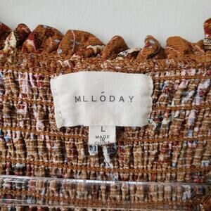 Melloday Women Smocked Peplum Top L boho Floral Cottage Country Fall