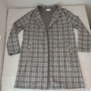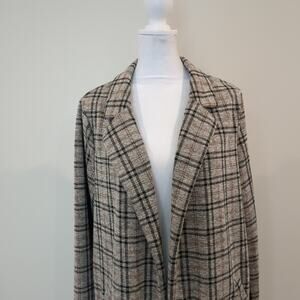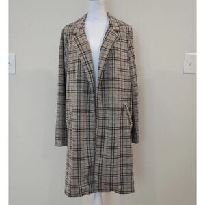 Melloday Women's L Long Plaid Jacket Blazer Trench City Preppy