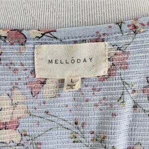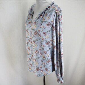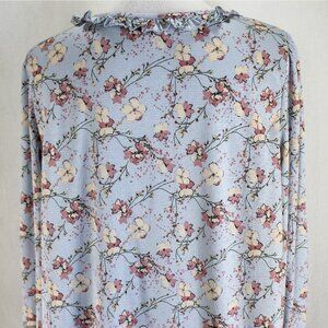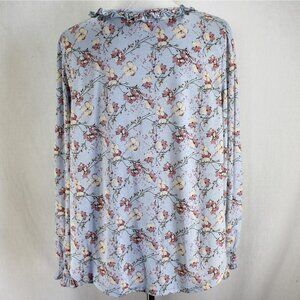 Melloday Womens Top Size L Blue Pink Ivory Floral Long Sleeve V Neck Pullover