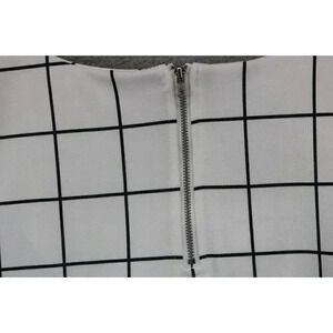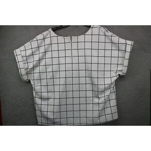 This is a Melloday Women's Windowpane top that is a size 3X. It has cuffed sleeves. It is 95% Polyester and 5% Spandex. It has a zipper in the back. Laying flat, it measures: Armpit to armpit-27" and the length is 28". In good condition.