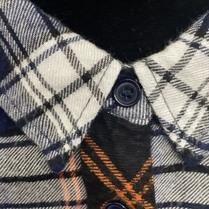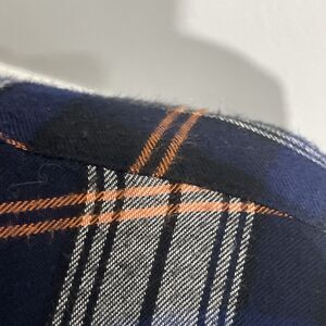 Melloday Womens XL Blue Orange Flannel Shirt Button Front Long Sleeve Plaid
