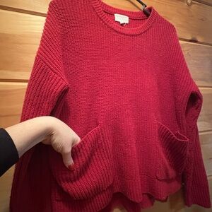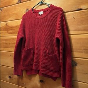 Melloday Women's sweater Long Sleeve Two Pockets Pullover In Deep Red Size M