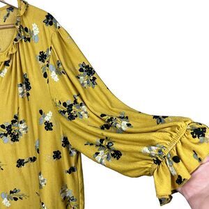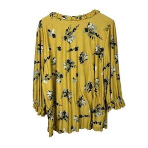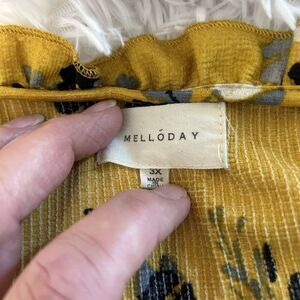 Melloday Yellow Floral Blouse Plus 3X V-Neck Top Ruffle Boho Stretch Flowy Loose