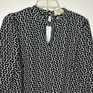 Melloday shirt. Unique puzzle piece type of design. Black and white. Keyhole front and back. Two button closure in back. Poly/ spandex blend. Excellent preowned condition.
