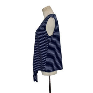 Melloday blue white stripes sleeveless front knot top size Large