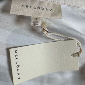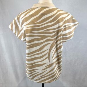 Melloday cream and taupe tiger print vneck cap sleeve blouse top size small NWT