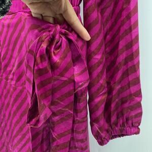 Melloday pink brown zebra print faux wrap puff sleeve midi dress size s