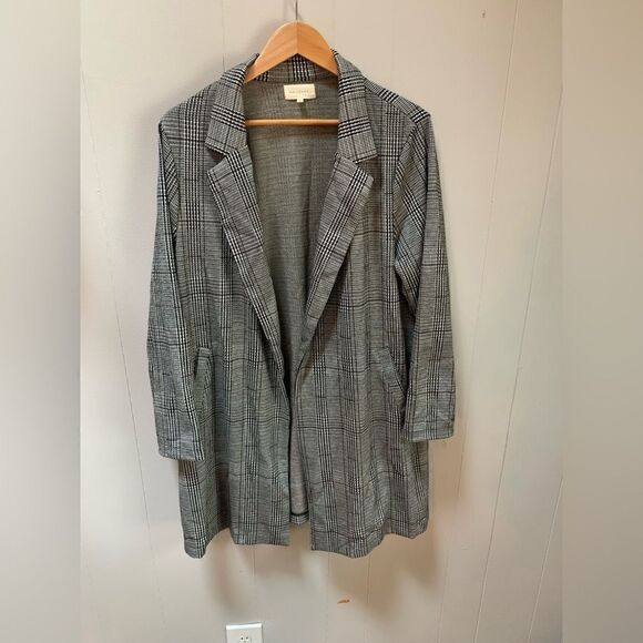 Top off any classy ensemble with this longline topper styled with a menswear-inspired silhouette, notched lapel and slant welt pockets.