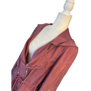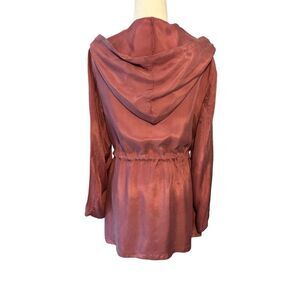 Great condition Melloday mauve colored, hooded jacket. Zip front. Cinch waist. Pockets. Sleeves convert to 3/4.