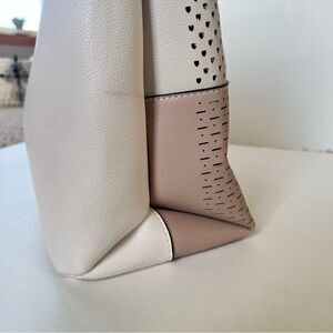 Mellow World Laser Cut Neutral Colorblock Cream Tan Large Tote Bag Purse Set