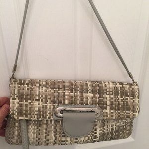 Mellow World gray and taupe straw crossbody/ wrist