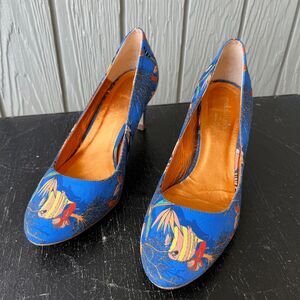 Mellow Yellow Blue Aquarium Print Heels Sz 7.5/8, Rare