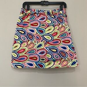 Super cute colorful skirt. Comfortable. Two front pockets. It comes with a belt tie. Side zipper. Fully lined. Excellent condition.