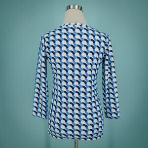 Melly M Size Small S Blue Geometric Print V Neck Long Sleeve Catalina Cloth Style Knit Top Blouse Shirt