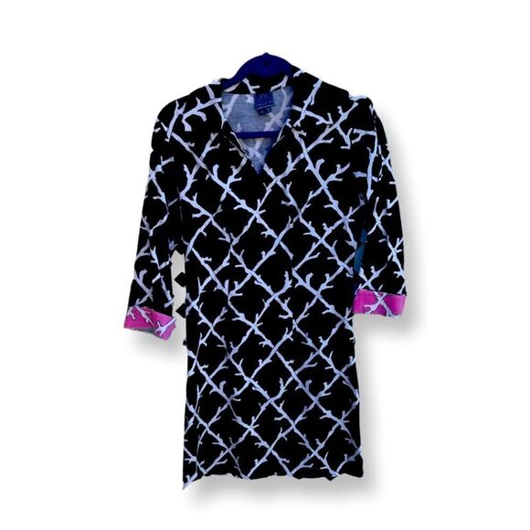 Melly M - Knee Length Dress - Size 2. Can you say adorbs … sophisticated black and white pattern with a pink arm flare … pair with cute pumps and you’re set for the office , lunch with friends or any outing! #MellyM
