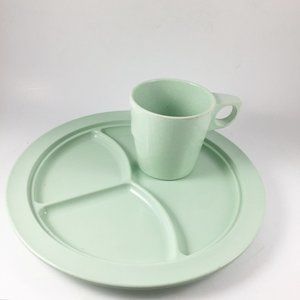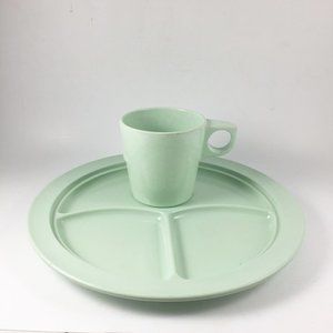 Melmac Divided Plate and Matching Cup Jadite Green Set Mint