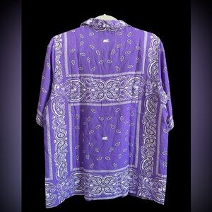 Melody Ehsani ME Purple Bandana Print Button Shirt Short Sleeve Medium