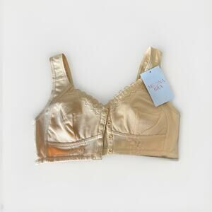 The Melon Color XS senior Bra by Moona is a stylish and comfortable option for petite women. Featuring a lace pattern, button closure, and wireless underwire type, this front-button bra in a vibrant orange color offers full coverage and breathability. Made from a blend of polyester and cotton, this bra is designed for comfort with features like lightweight fabric, comfort straps, and a hand wash only care instruction. Perfect for adding a pop of color to your lingerie collection, this Moona bra is a one-size-fits-XS cup size and is ideal for those looking for a colorful and supportive undergarment.