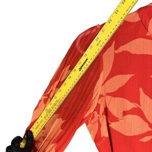 Melonie T New With Tags Womens Size 12 Chiffon Ruffle Artsy Leaf Print Tiered Asymmetric Dress 3/4 Pleated Balloon Sleeve Mock Neck Orange Wedding Guest Bohemian Flowy Flouncy Feminine