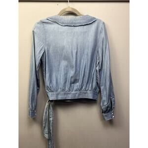 Melrose And Market Charmbray wrap shirt Womens XS Tie Waist Blue V Neck