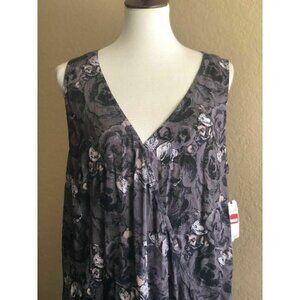 A single snap at the neckline and a self-tie side secure this sleeveless floral wrap front dress.