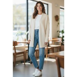Melrose And Market NWT Open Front Cardigan L Cream Oversized Lagenlook Sweater