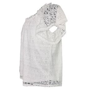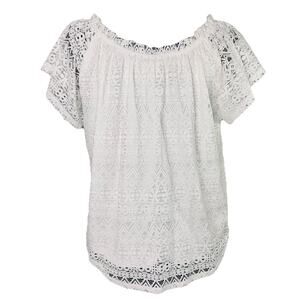 Melrose And Market White Lace Eyelet Cutout Off Shoulder Ruffle Sleeve SM Blouse