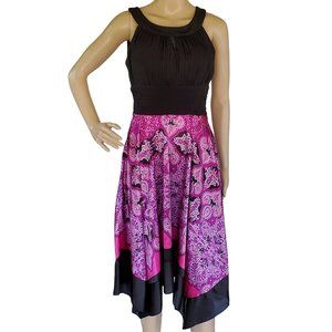 Melrose Black Purple Fuchsia Pink Scarf Skirt Dress Women's 8