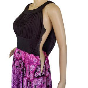 Melrose Black & Purple Scarf Skirt Dress Women's 8 Side Zipper Bra Insert