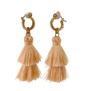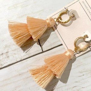 NEW - Trendy peach pink dangle earrings that are the cutest tassels. Gold hoop post accents.
