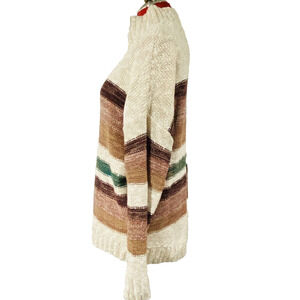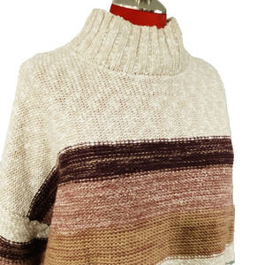 Melrose & Market Ladies Pullover Sweater in size M - soft textured acrylic and cotton blend knit in Earth tone stripes. Slouchy casual oversized look with moc turtle neck and handkniit appearance. The perfect casual days sweater with a moderate hi/low hemline! In excellent pre-owned condition - no damage or flaws - pair with your favorite denims and you are ready to go!