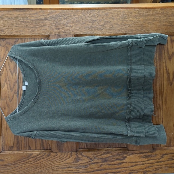Melrose and Market Distressed Waffle Knit Long Sleeve Scoop Wide Neck Blouse M