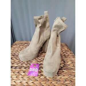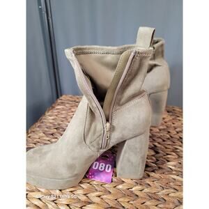 Melrose and Market Emerson Women's 8 M Beige Suede Block Heel Platform Bootie