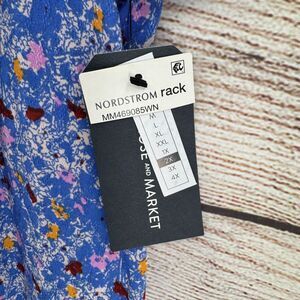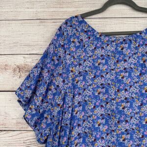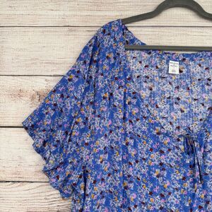 Item: Melrose and Market Floral V-Neck Tie Front Blouse Women's 2X Blue NEW