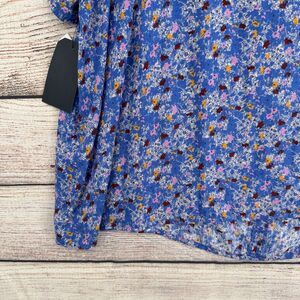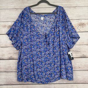 Melrose and Market Floral V-Neck Tie Front Blouse Women's 2X Blue NEW
