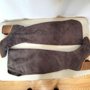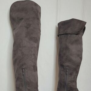 Melrose and Market Gray Faux Suede Over-The-Knee Stacked Heel Boots - Size 9.5